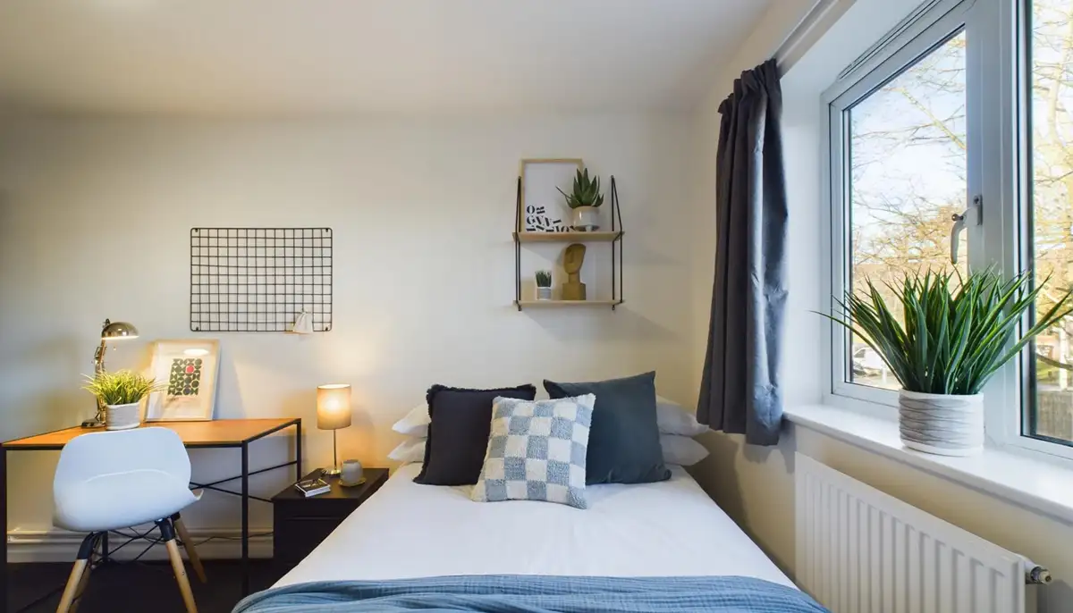 Each double bedroom is fully furnished with a desk, chair, and plenty of storage, while the property includes a modern bathroom, a bright open-plan lounge with large sofas and a flat-screen TV, and a spacious kitchen featuring modern appliances, multiple fridges, and you’ll have access to a shared washer and dryer, with washes at £3.80 and drying at £2.70. High-speed broadband is included, keeping you connected and ready for study or streaming.