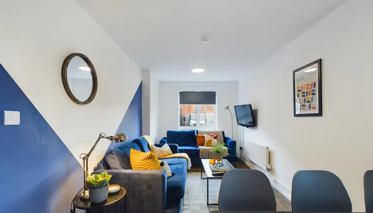 Each double bedroom is fully furnished with a desk, comfortable chair, and ample storage. The property features a modern bathroom, a bright living area with large sofas and a flat-screen TV, and a dining space great for study sessions or shared meals. The kitchen comes equipped with modern appliances, multiple fridges, and you’ll have access to a shared washer and dryer, with washes at £3.80 and drying at £2.70.