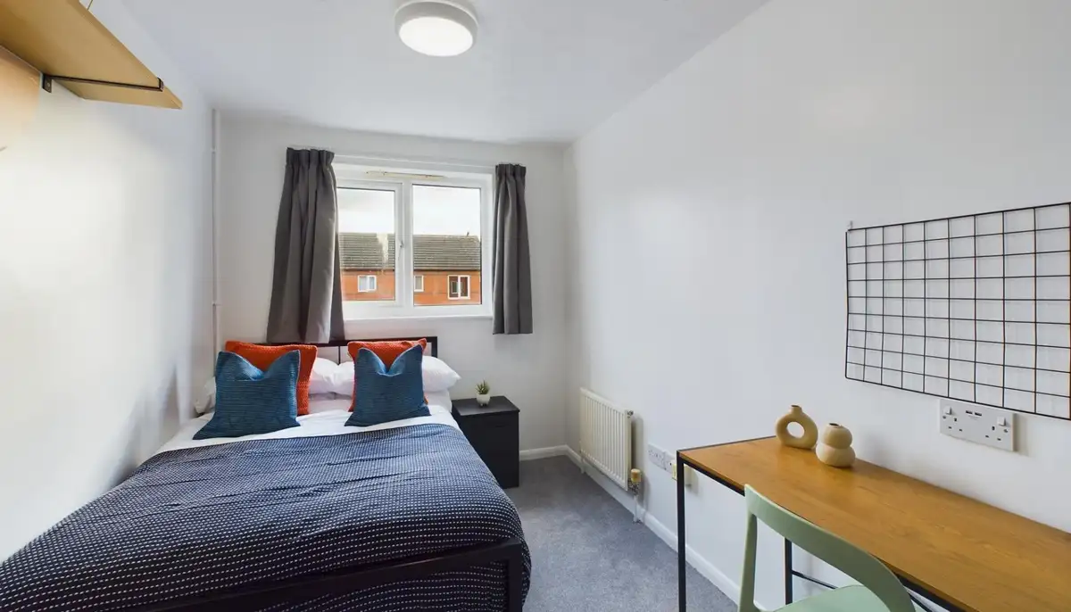 Each bedroom is fully furnished and comes with a dedicated workspace and generous storage, offering a calm and practical environment for study, work, or relaxation.