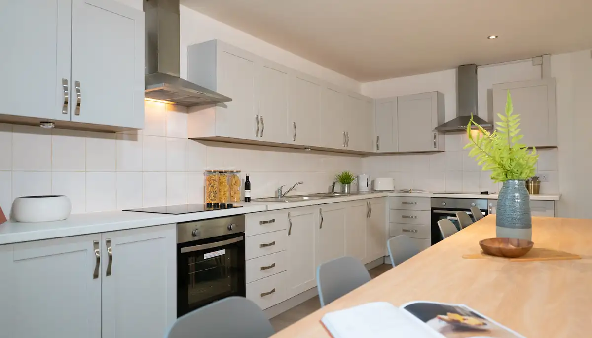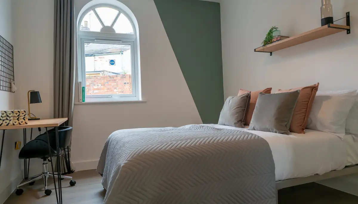 Located on Thesiger Street, this impressive student property boasts 12 spacious double bedrooms, each furnished with a desk, comfortable chair, and ample storage. Residents benefit from four modern bathrooms, providing convenience and ease of living. The chic living room offers large sofas and a flat-screen TV ideal for social gathering, while the generously sized dining table creates the perfect setting for communal meals. The fully equipped kitchen features contemporary appliances, multiple fridges, and a washing machine to support functional student living.