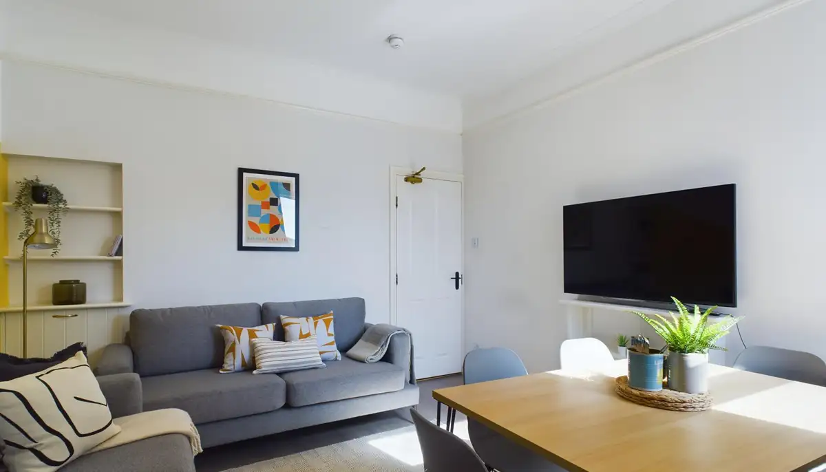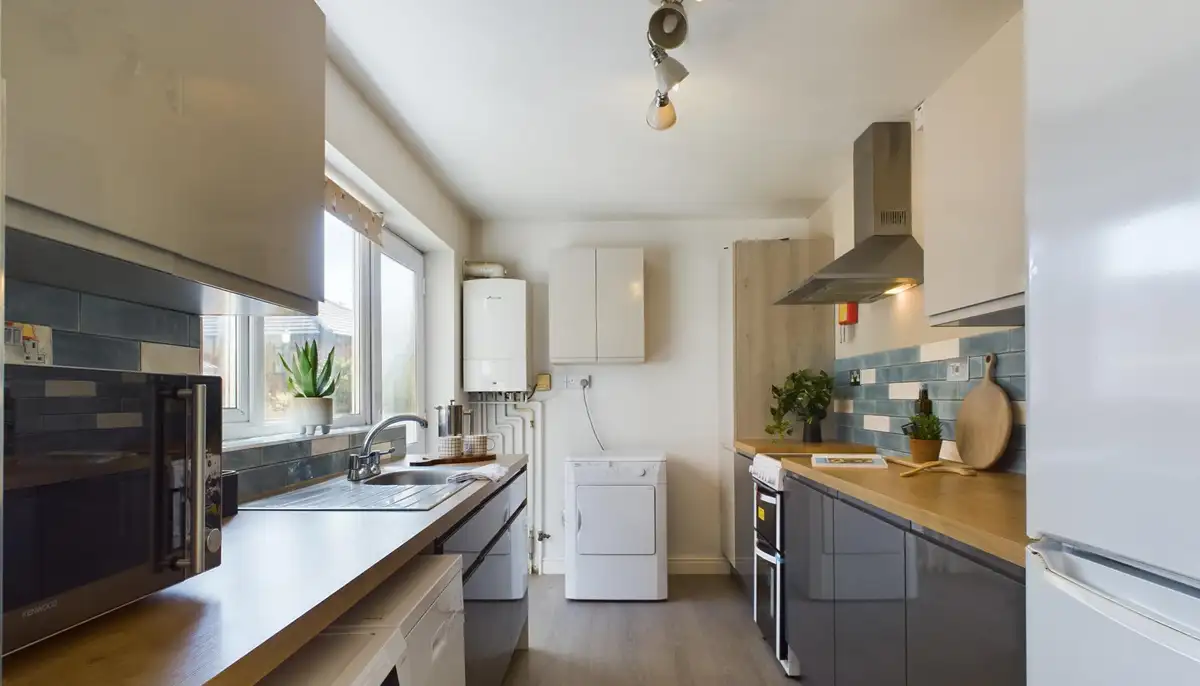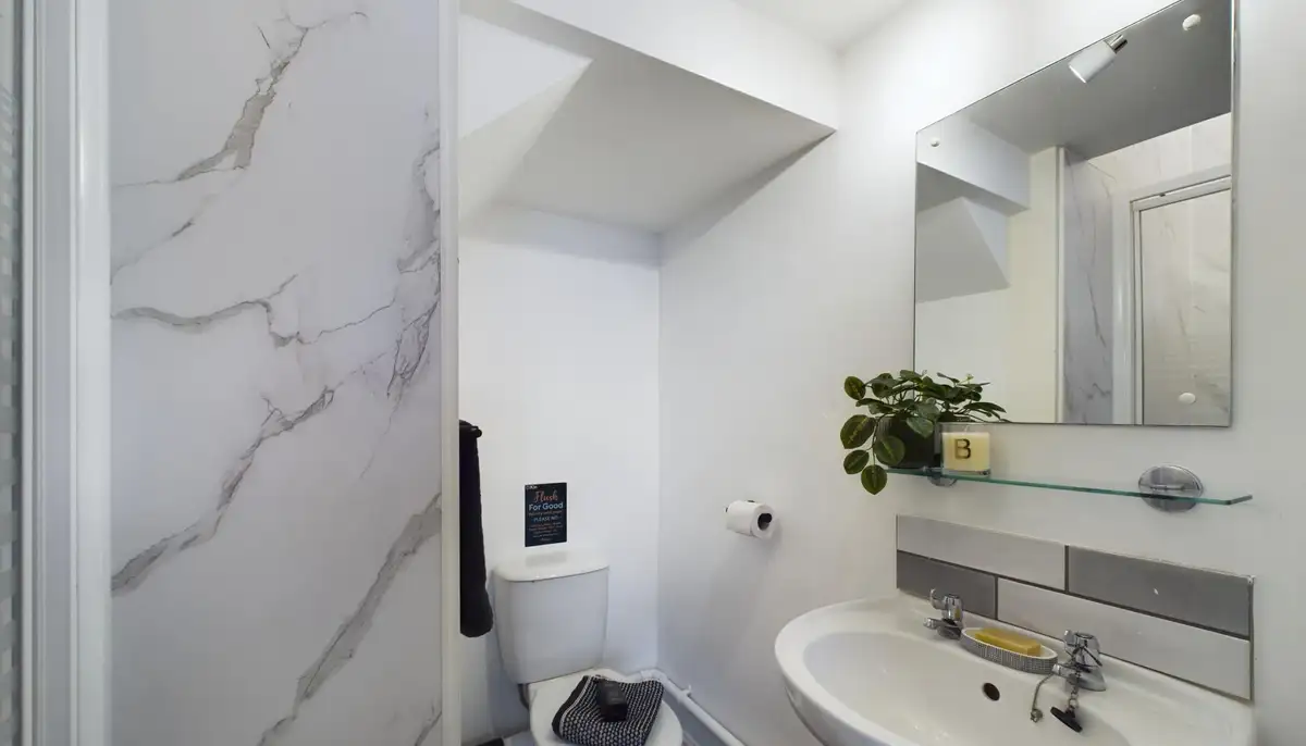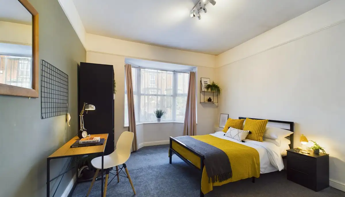 This elegant property boasts six spacious double bedrooms furnished with desks, comfortable chairs, and ample storage. Accompanied by two contemporary bathrooms, residents enjoy convenience and comfort.