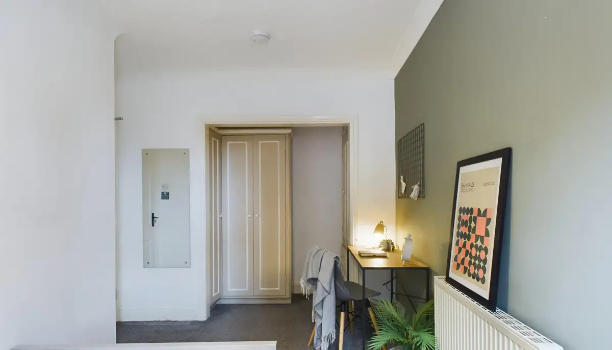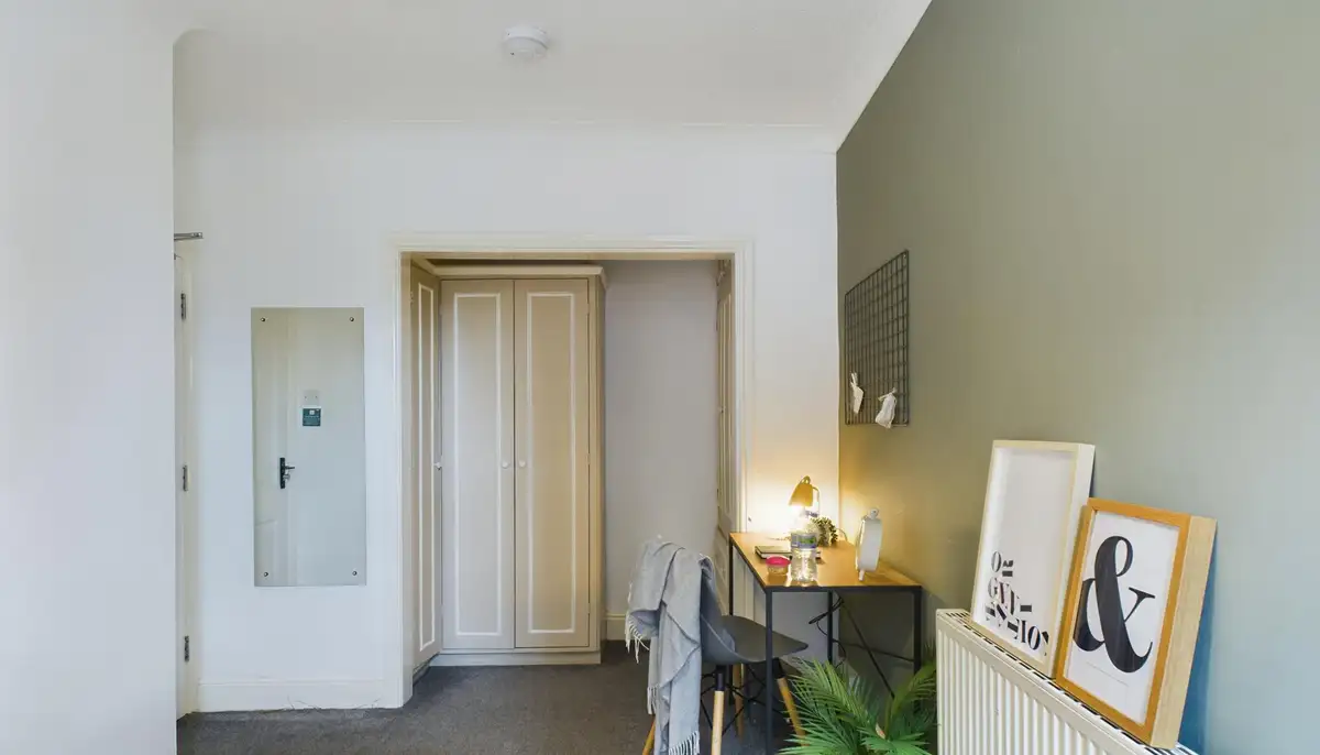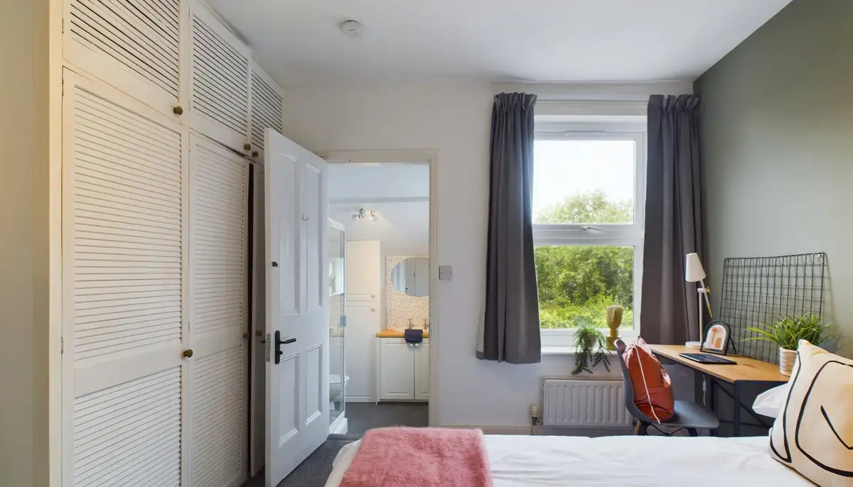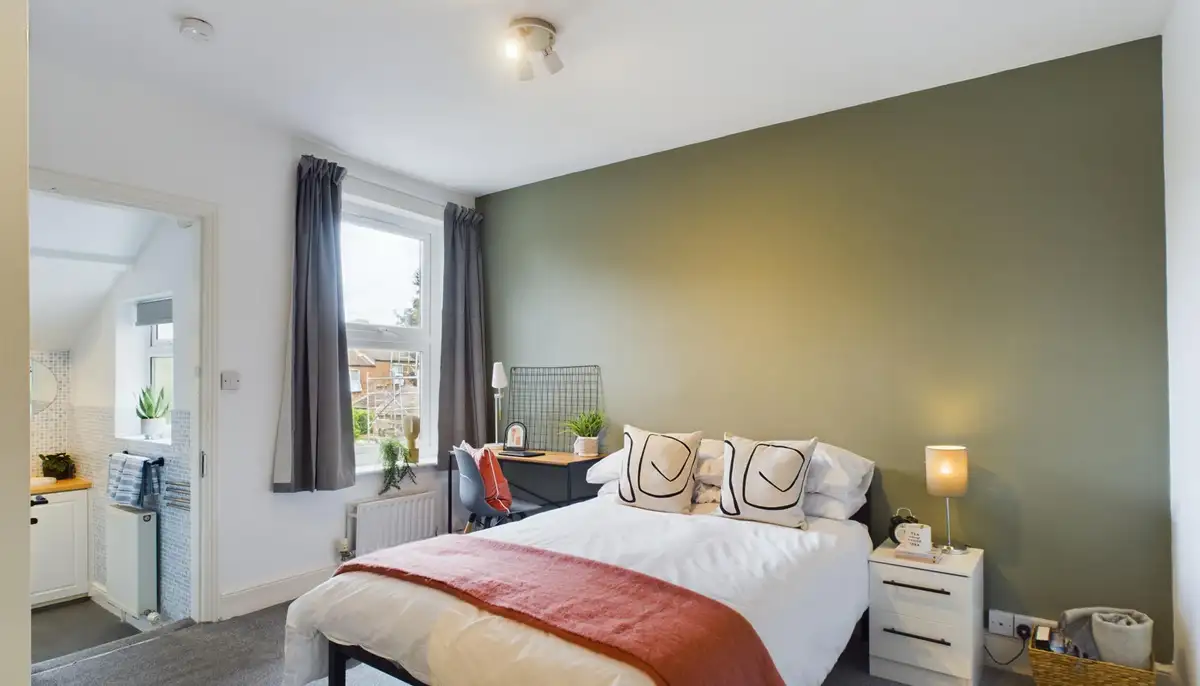 This stylishly, recently refurbished property offers four double bedrooms with desks, comfortable chairs, and ample storage, along with two modern bathrooms.