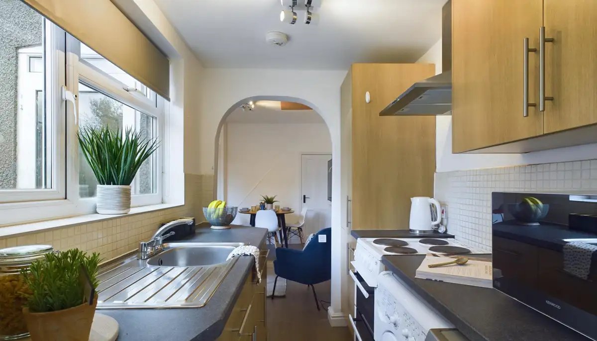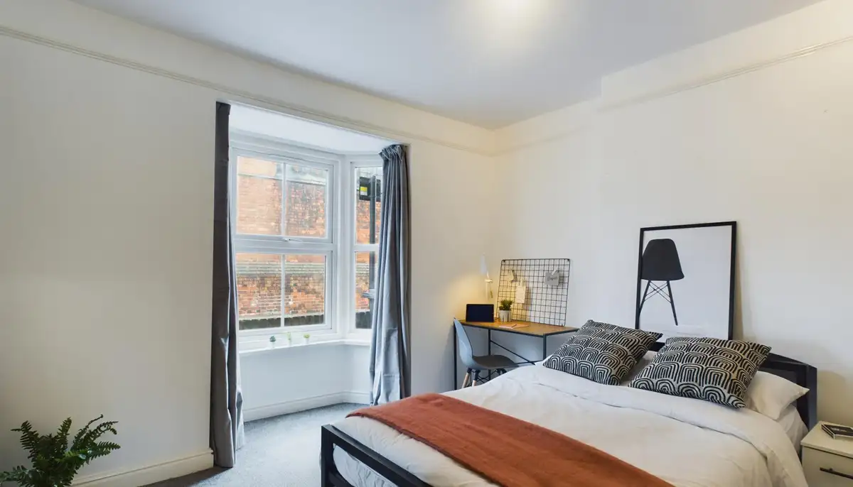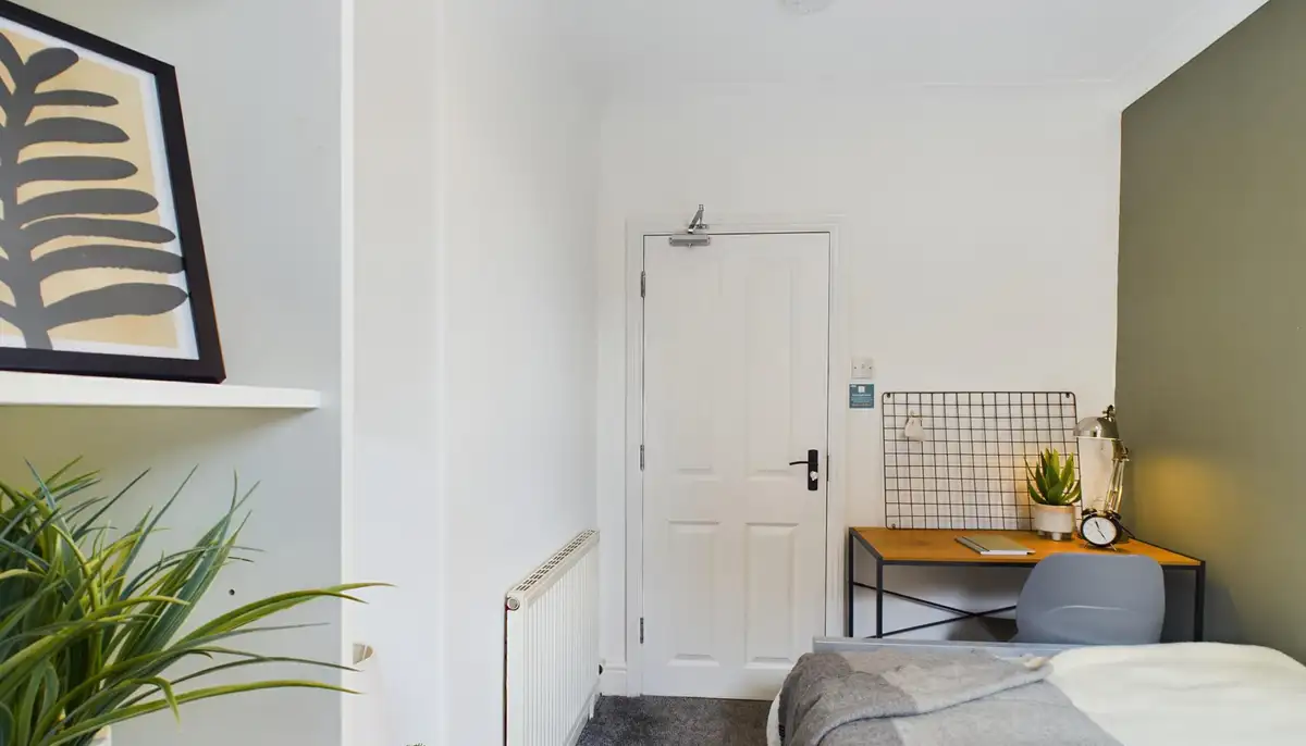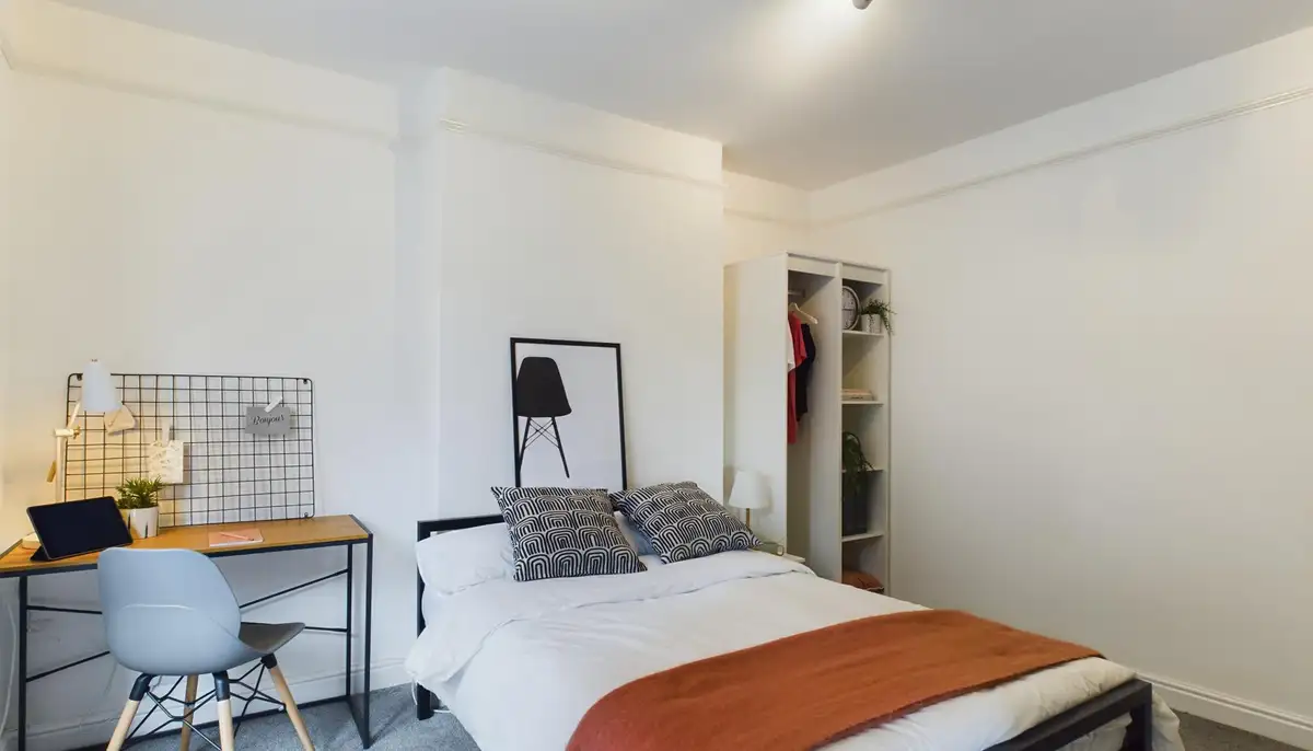 This stylishly, recently refurbished property offers four double bedrooms with desks, comfortable chairs, and ample storage, along with two modern bathrooms.