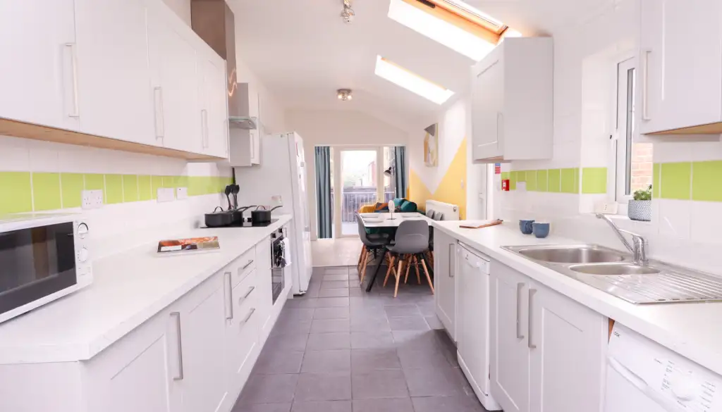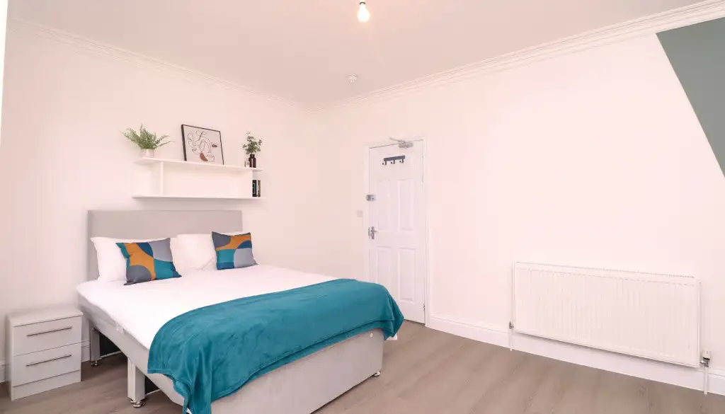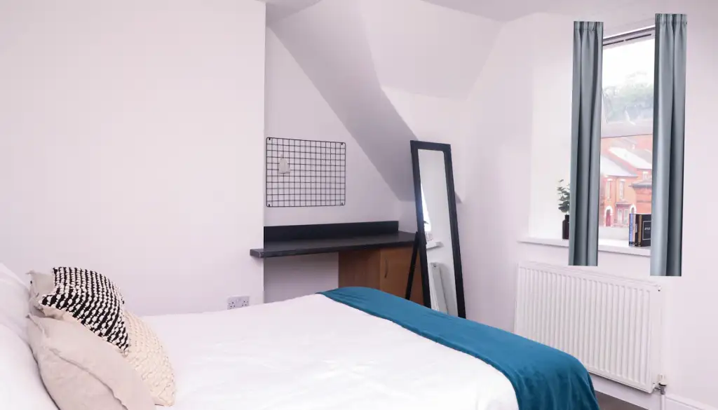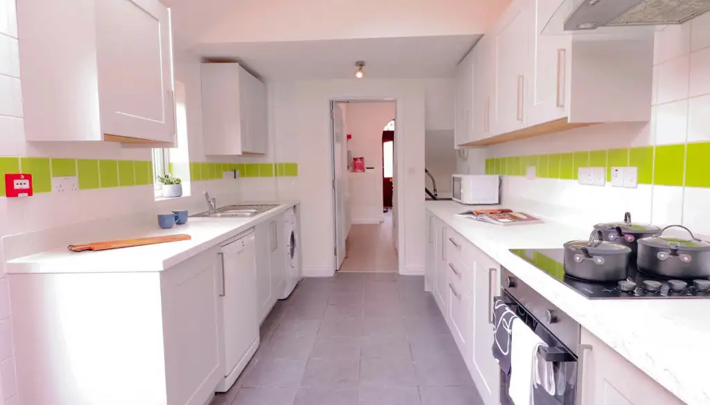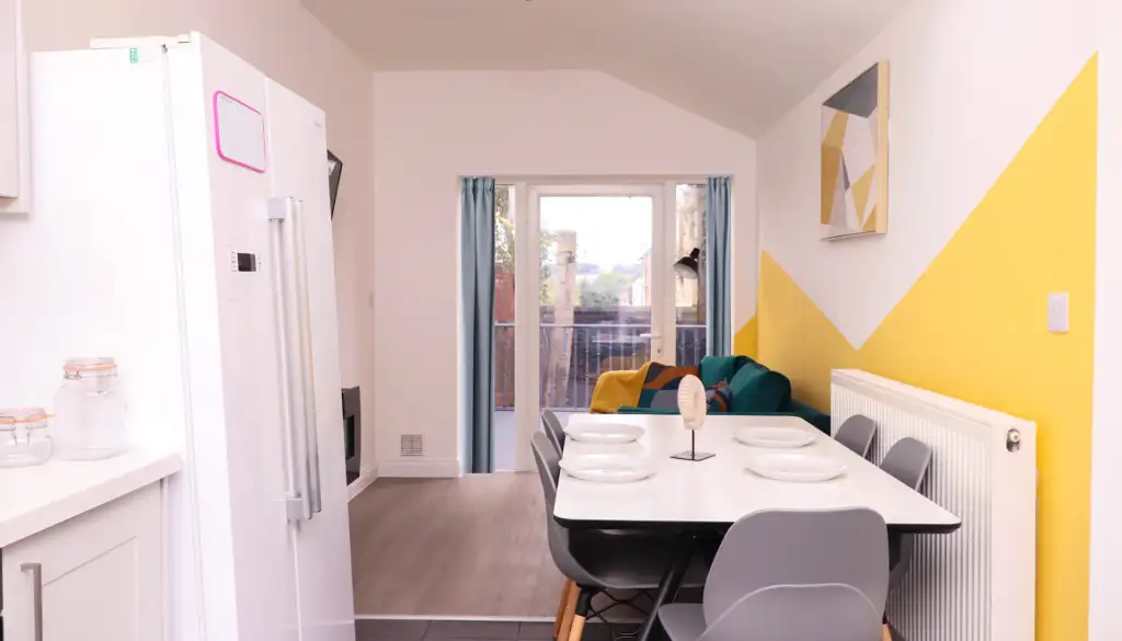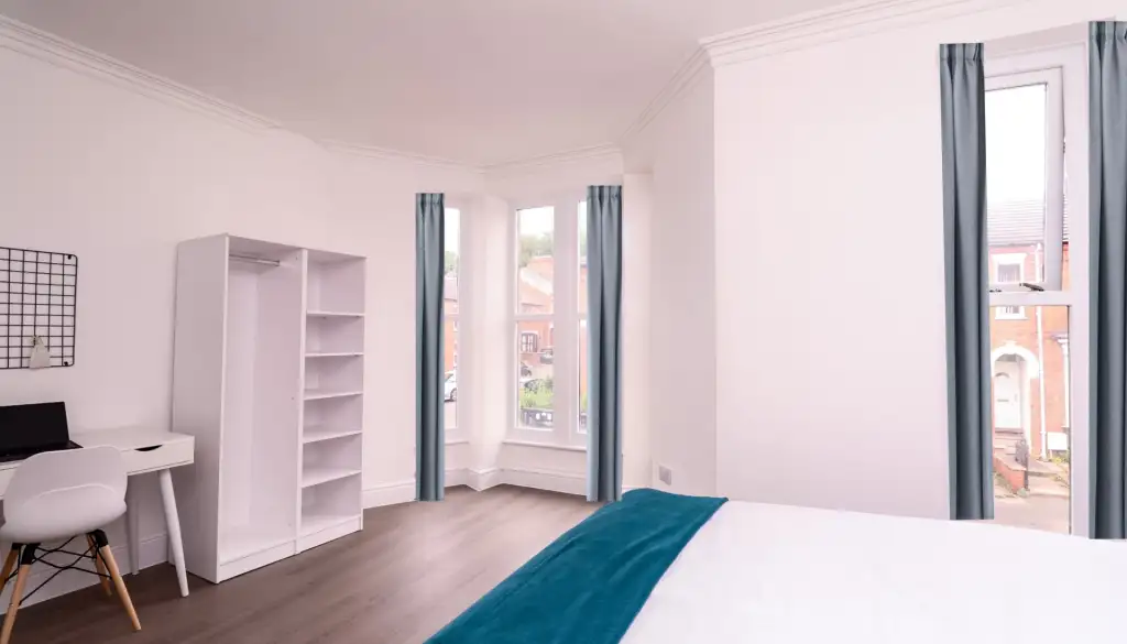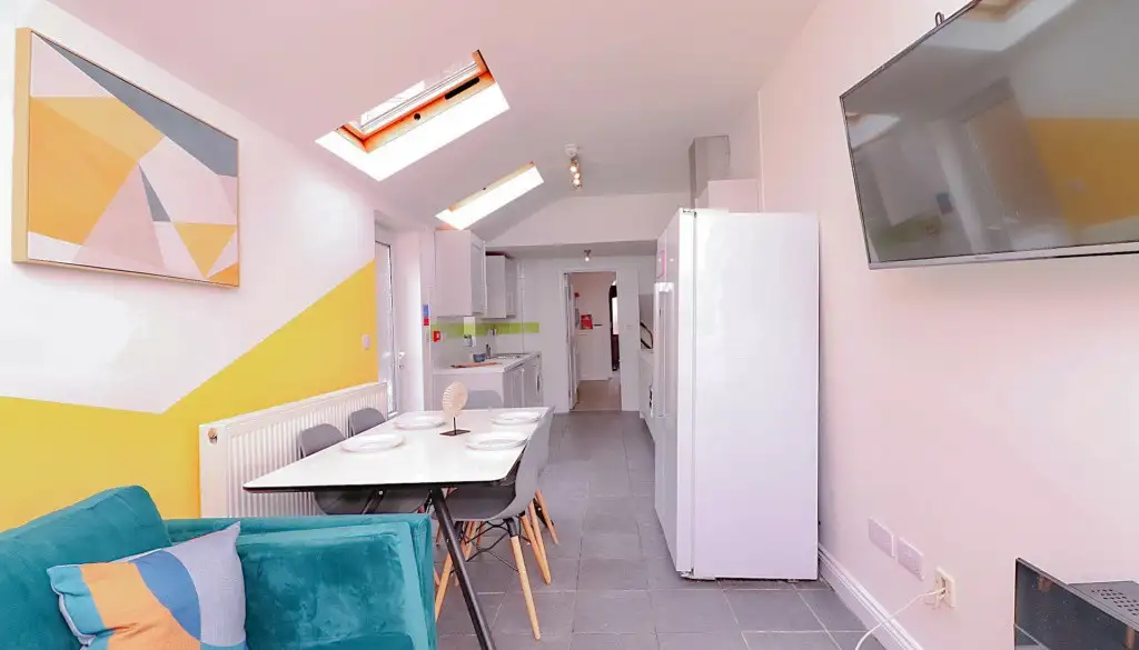 Nestled on Monks Road, this stylish residence features five double bedrooms, each equipped with desks, comfortable chairs, and ample storage. With three modern bathrooms, convenience is assured. The chic living room beckons with spacious sofas and a large flat-screen TV, perfect for socialising or relaxation. The well-equipped kitchen boasts modern appliances, multiple fridges, and a washing machine.