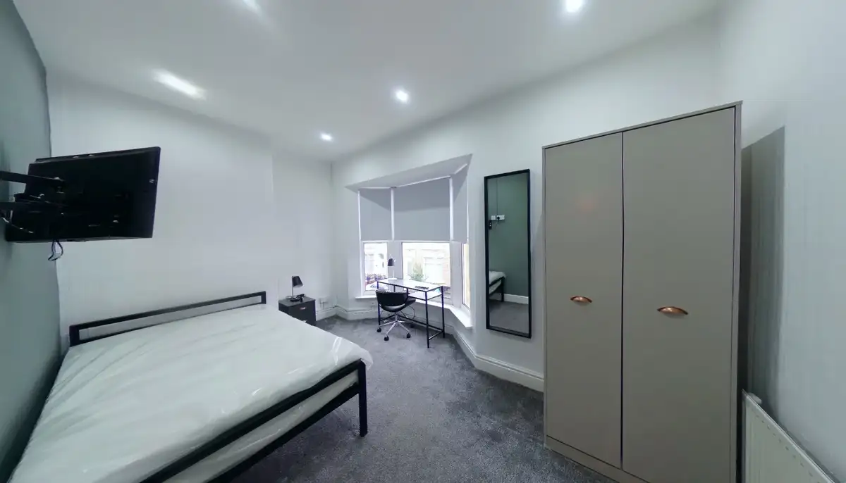Situated in the vibrant Kensington Fields, this stylish property offers four double bedrooms complete with desks, comfy chairs, and ample storage, alongside a modern bathroom.