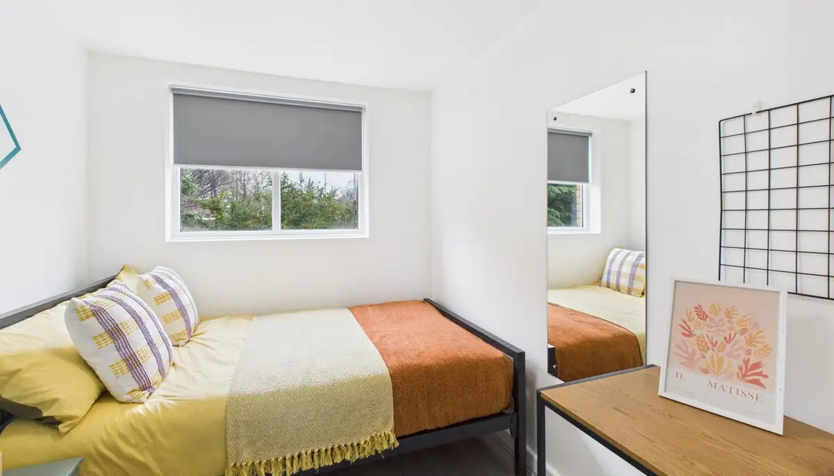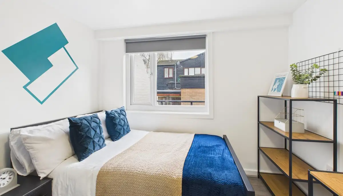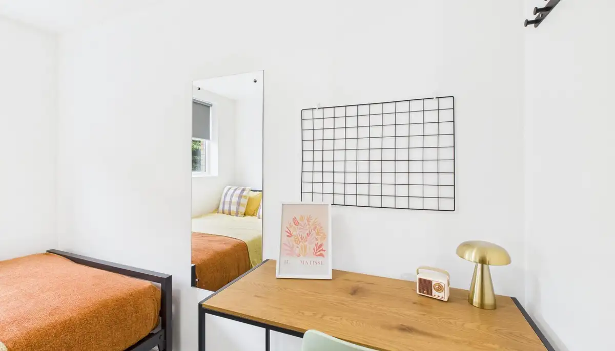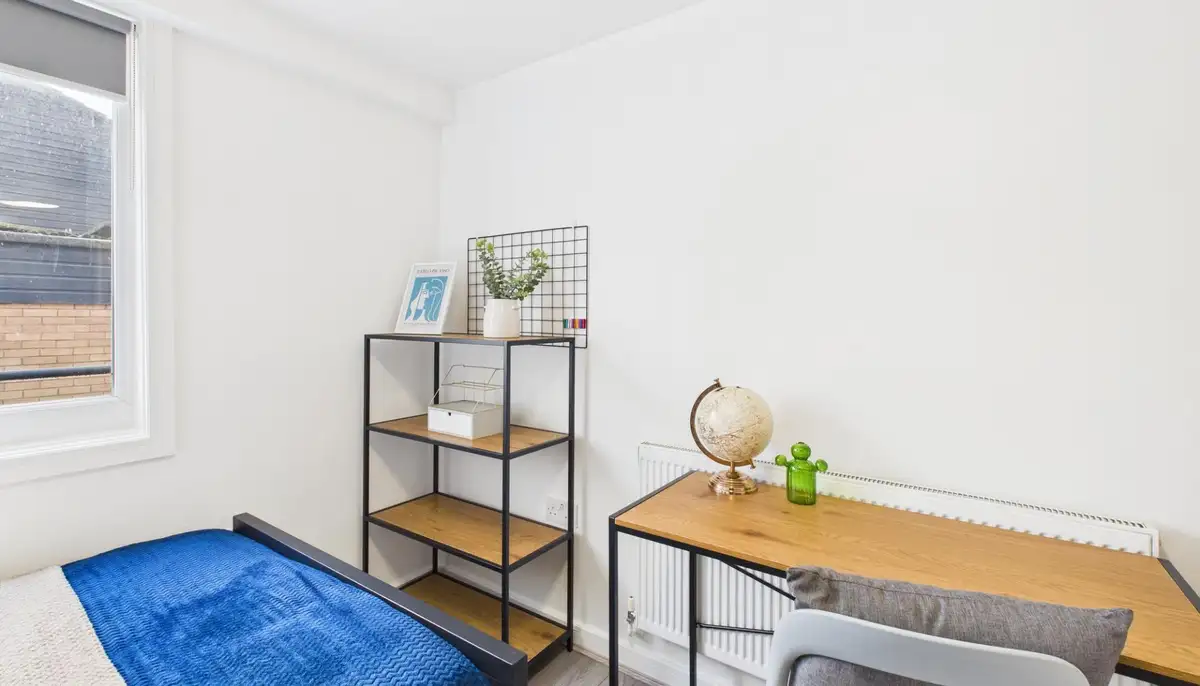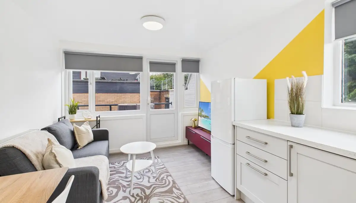 This stylish two-bedroom apartment offers modern living ideal for both students and working professionals in a well-connected location. Each bedroom includes a desk, comfortable chair, and ample storage, making it perfect for studying or working from home, while a private balcony provides a rare outdoor space to relax and unwind.